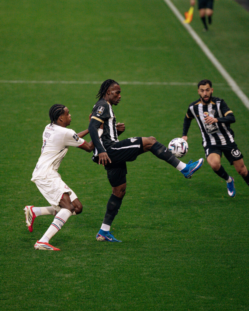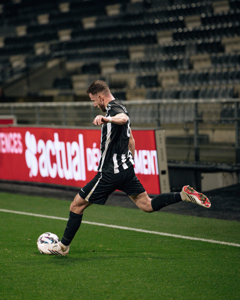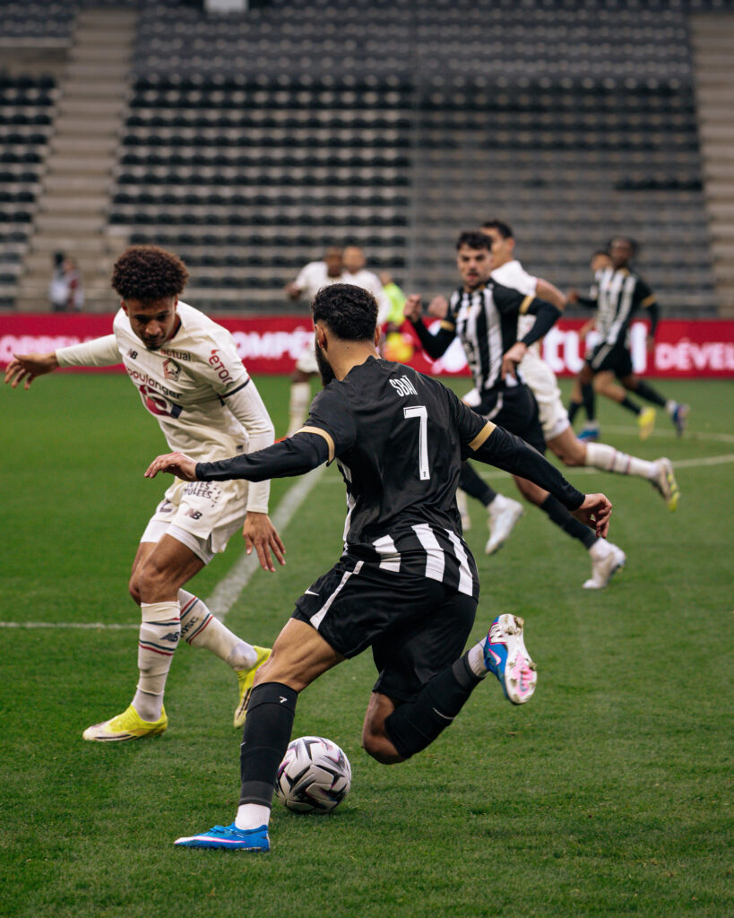 La demi-heure de jeu passée, et après avoir subi plusieurs assauts adverses consécutifs, nos Noir&Blanc accélèrent et se procurent quelques situations. Branco van den Boomen trouve Goduine Koyalipou sur coup franc mais la tête de ce dernier passe à côté. Trois minutes plus tard, Amine Sbaï effectue un bon travail pour remonter le terrain et servir Louis Mouton en entrée de surface. La frappe de notre numéro 6 manque de peu le cadre. Dans les ultimes instants de la première mi-temps, Olivier Giroud convertit un pénalty et permet aux visiteurs de mener (1-0, 45+1’).