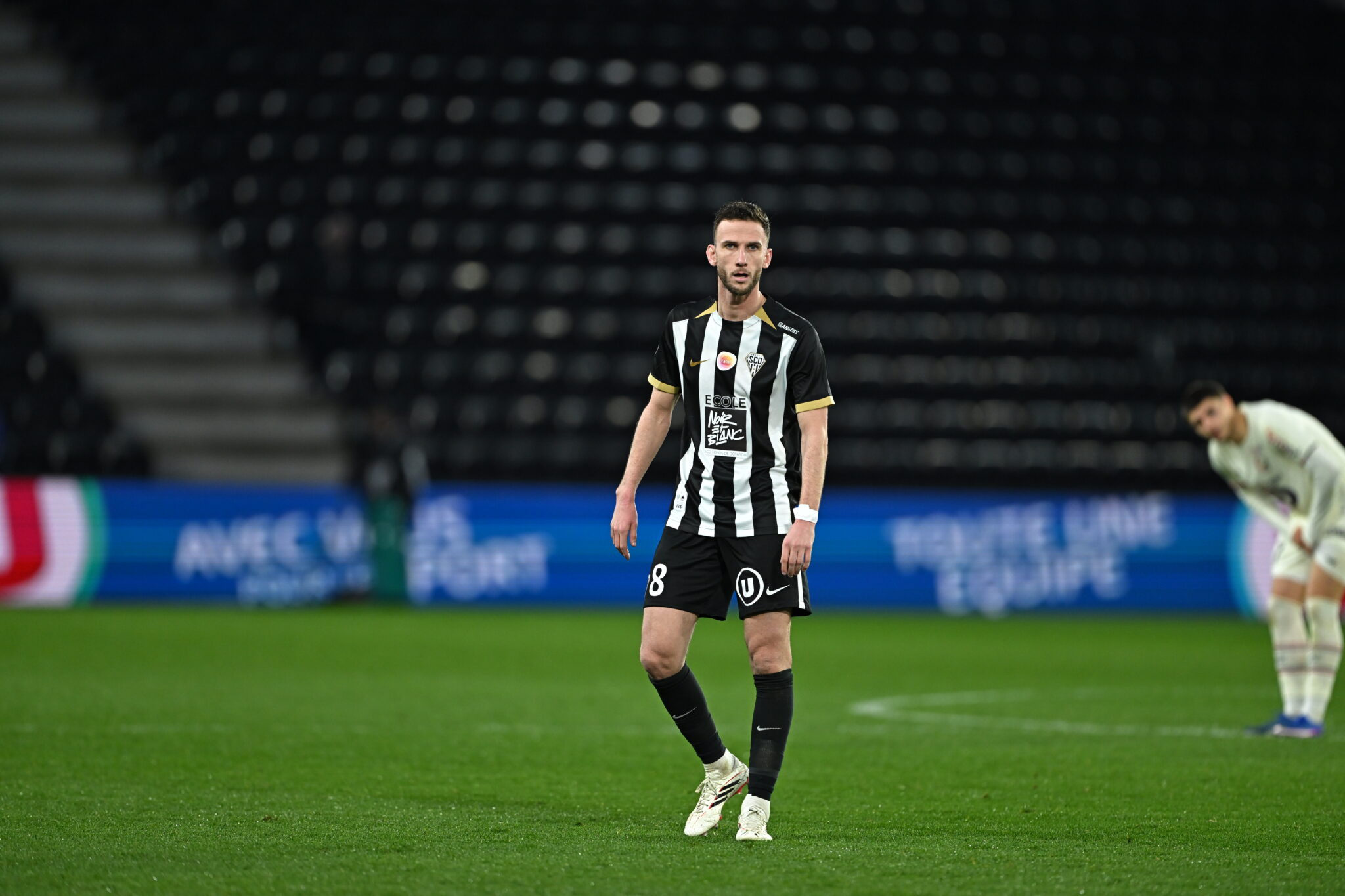 En deuxième mi-temps, nos Angevins se procurent rapidement une situation. Goduine Koyalipou place une tête depuis le point de pénalty. Celle-ci est captée sur sa ligne par Berke Özer. Hervé Koffi répond au portier lillois en réalisant une très belle parade face à Olivier Giroud. À l’heure de jeu, nos Noir&Blanc multiplient les offensives et se rapprochent des buts adverses. À dix minutes du terme de la rencontre, Yassin Belkhdim propulse une tête excentrée que Berke Özer parvient à capter.