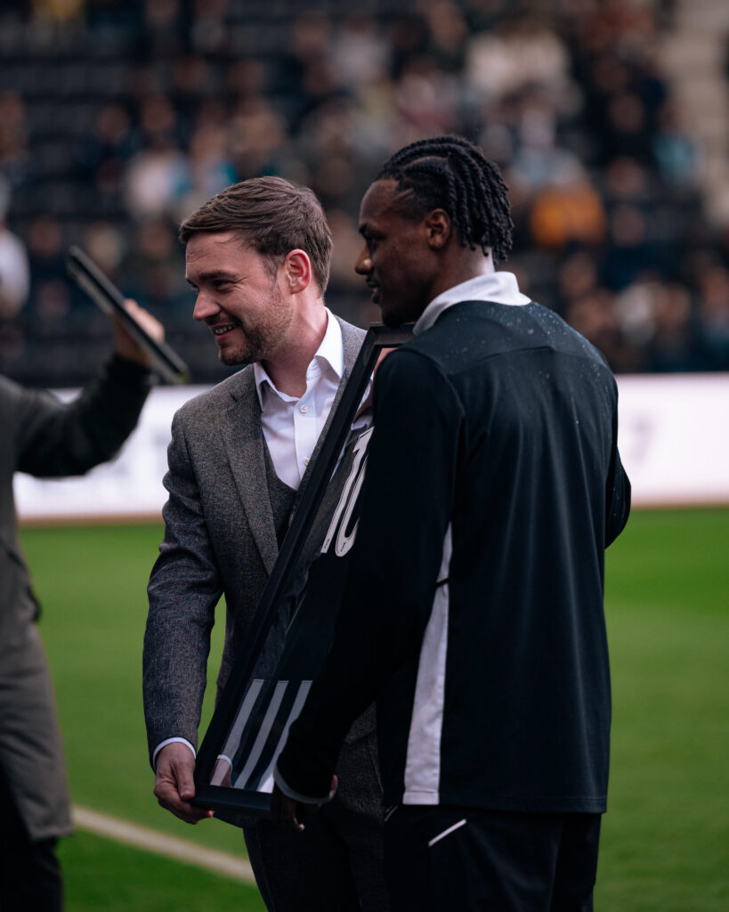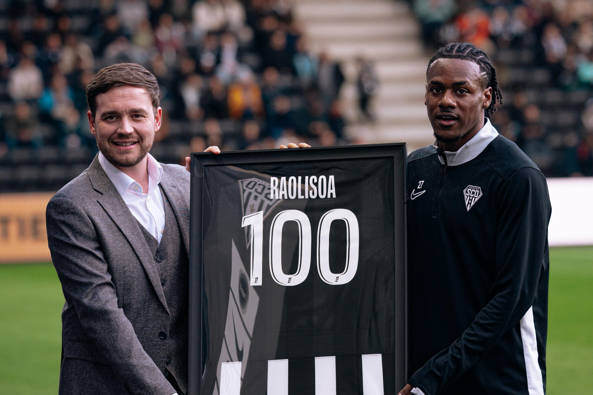 À la sortie de l’échauffement, Lilian Raolisoa s’est vu remettre son traditionnel cadre, à la suite de ses cent matchs disputés sous le maillot Noir&Blanc. Félicitations Lilian !
