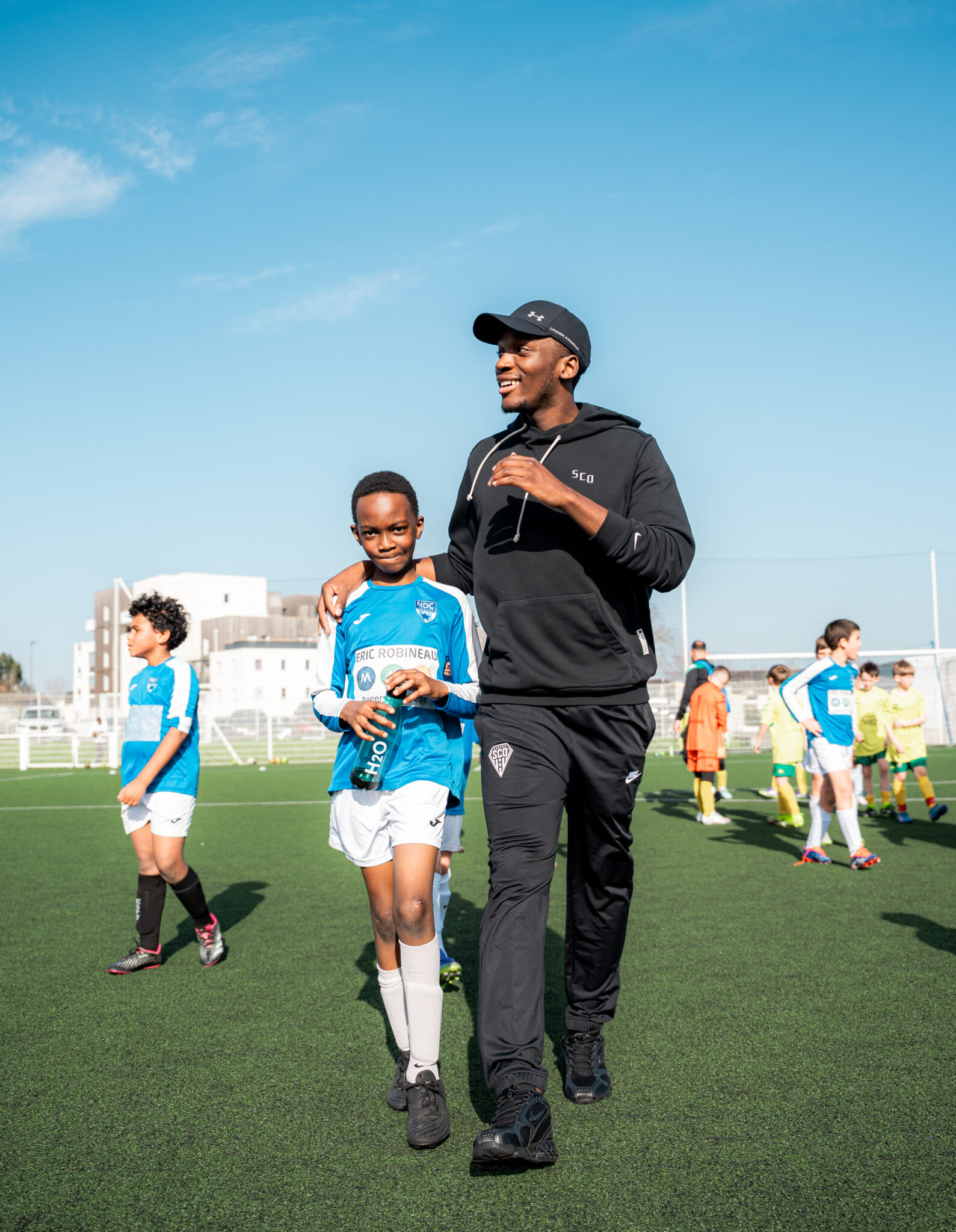 Après un partage, maître-mot de cet après-midi, sur le terrain, celui-ci s’est poursuivi avec une séance de photos et d’autographes avec les enfants présents.