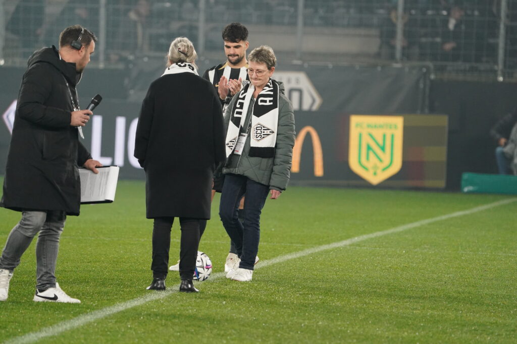 Mme Geneviève Landeau, assistante de Direction du Centre de Formation, au Club depuis 37 ans, et Madame Isabelle Radet, Cheffe comptable, au Club depuis plus de 20 ans, ont ainsi donné le coup d’envoi fictif du Derby face au FC Nantes.