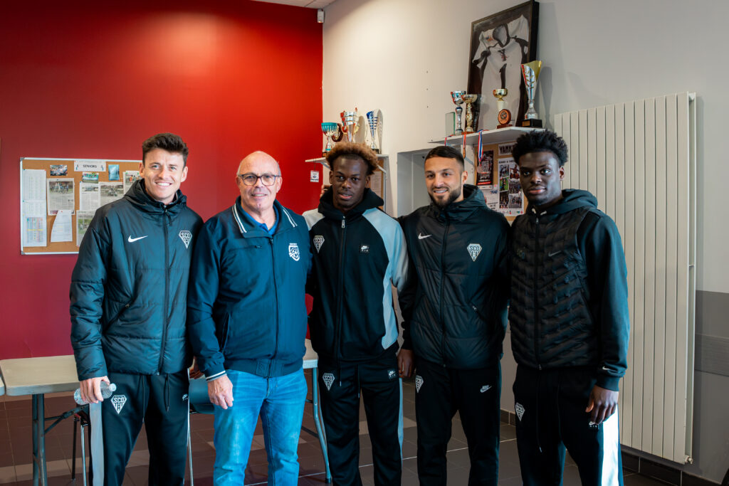 Haris Belkebla, Pierrick Capelle, Lanroy Machine, Jacques Ekomie et Laurent Boissier étaient présents, aux côtés du District de Maine-et-Loire, lors d’un plateau organisé au Stade Marcel Nauleau ce mercredi 25 mars.