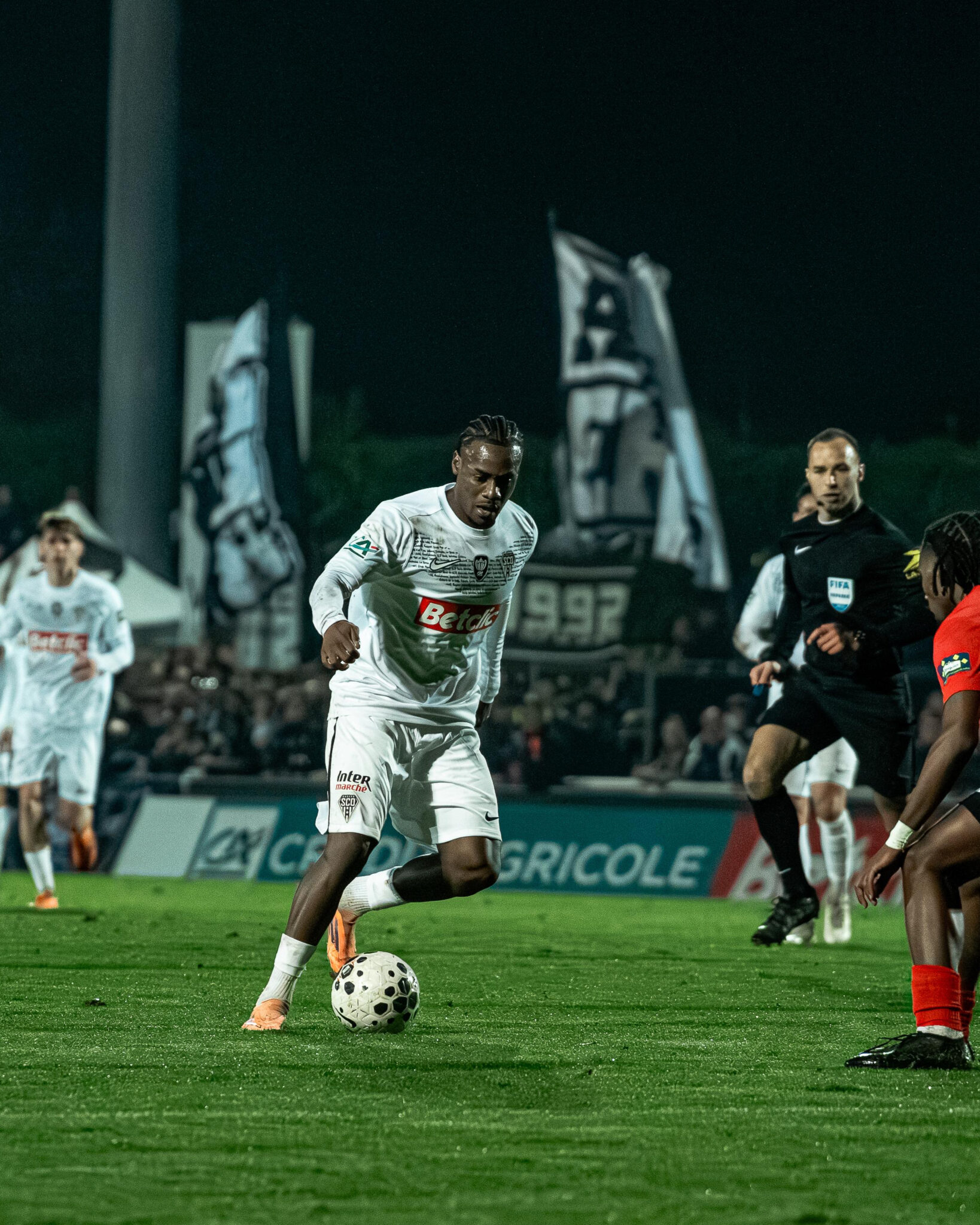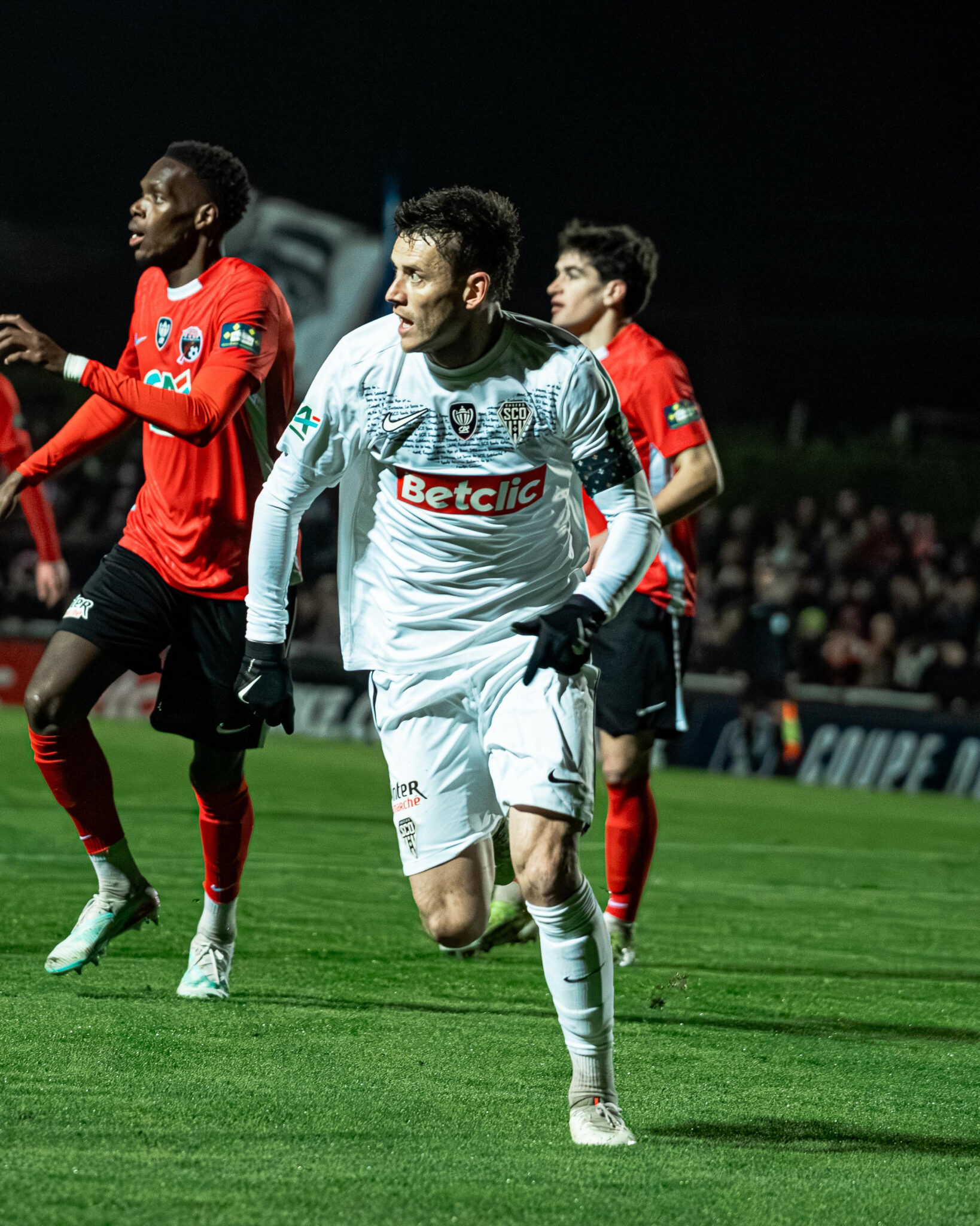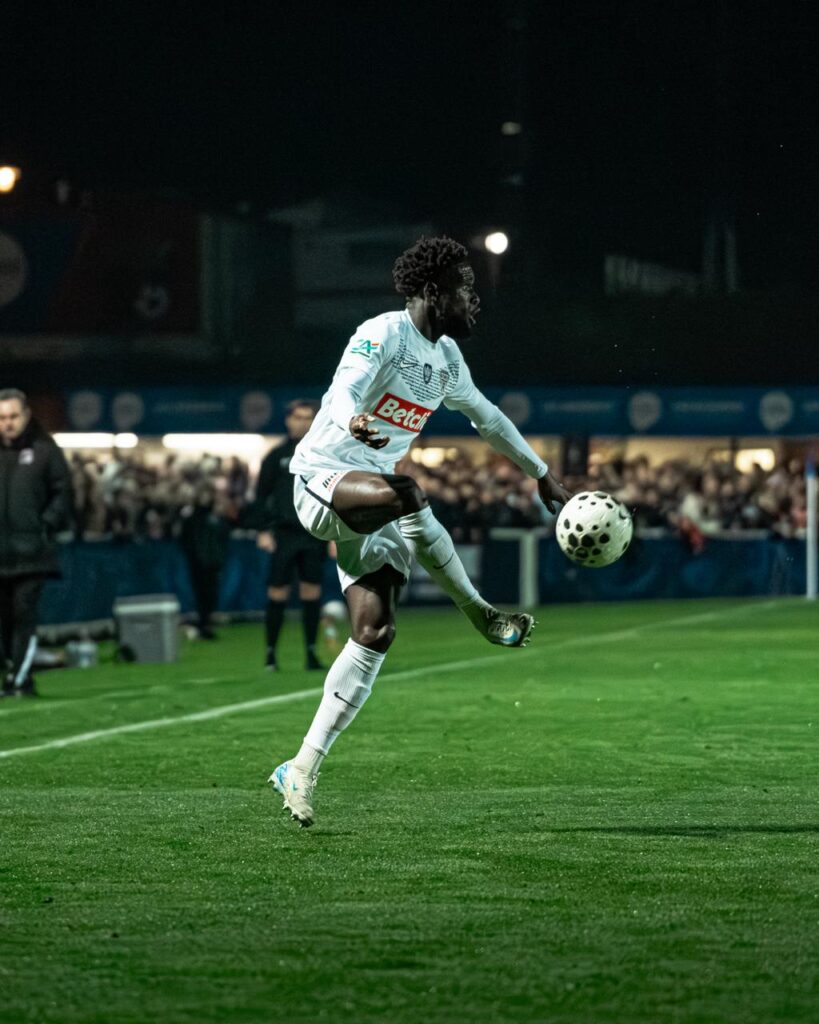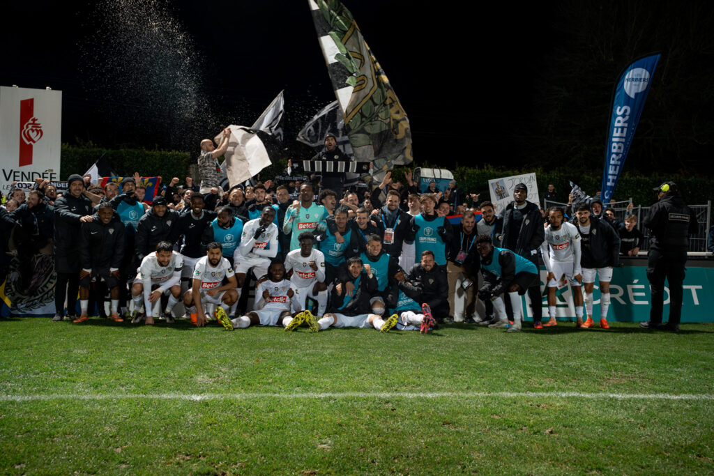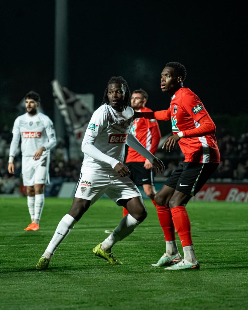 Rapidement après le retour sur la pelouse, Benjamin Brelivet laisse les locaux à dix après avoir écopé d’un deuxième carton jaune (52′). En supériorité numérique, nos Angevins assoient leur supériorité, d’abord par l’intermédiaire de Jordan Lefort qui ne trouve pas le cadre (56′) et de Prosper Peter dont la frappe est contrée par la défense (60′). Amine Sbaï y va également de sa tentative et passe très proche d’ouvrir le score. Il faut un arrêt de Bastien Rempp pour sauver les locaux (67′). Lilian Raolisoa et Sidiki Cherif se montrent également dangereux mais voient respectivement la défense (77′) et le gardien (80′) renvoyer leurs tentatives. Au bout du temps réglementaire, les deux équipes ne sont pas parvenues à se départager. Un rôle attribué à la séance de tirs aux buts. Grâce aux transformations d’Amine Sbaï, Lanroy Machine, Sidiki Cherif, Lilian Raolisoa, Dan Sinaté et Marius Courcoul, nos Angevins s’imposent et rejoignent les 16èmes de finale de la Coupe de France.