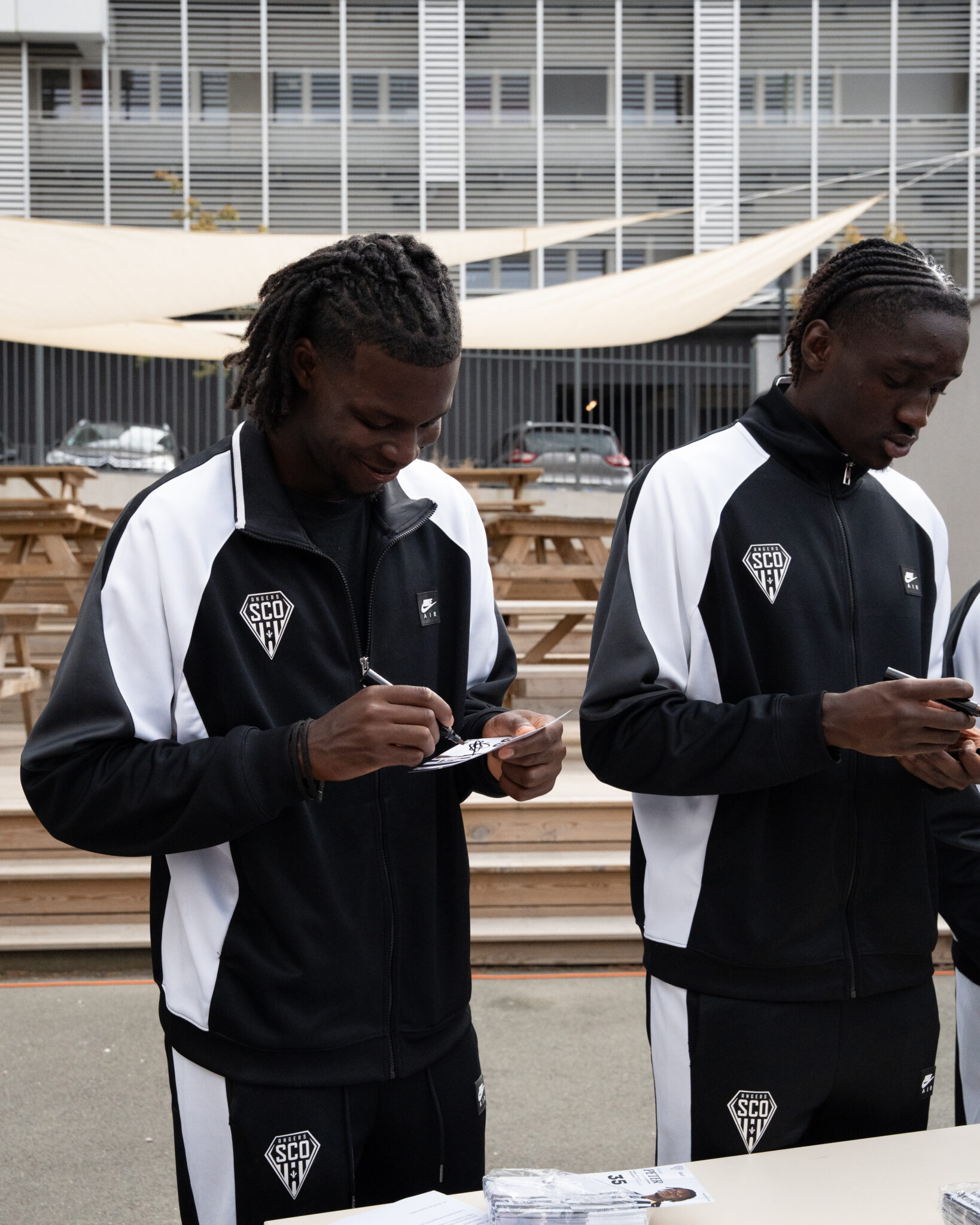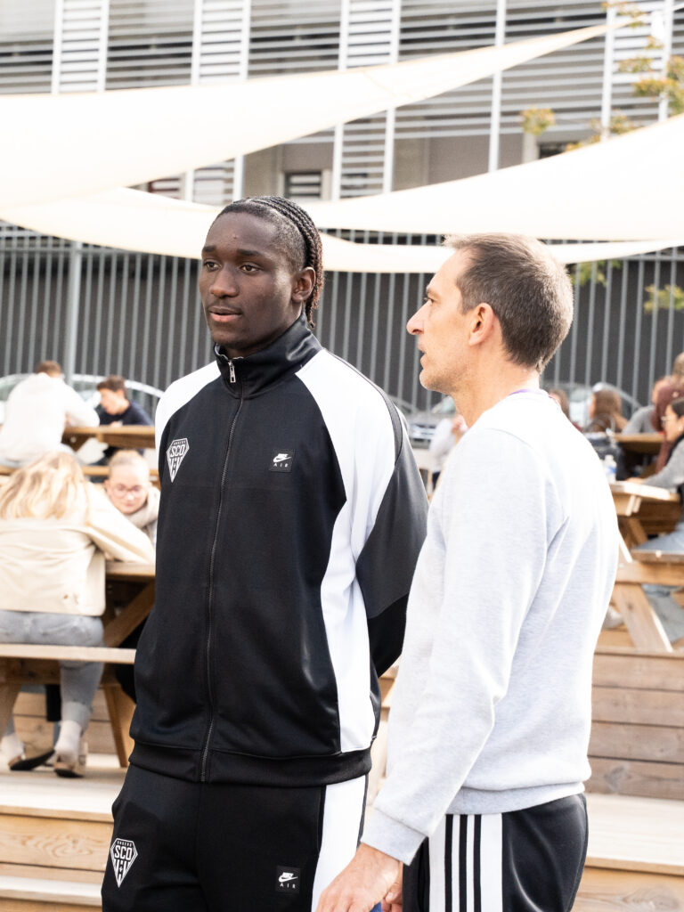 Dans le cadre du partenariat entre Angers SCO et le Lycée Joseph Wresinski, Prosper Peter, Marius Louër et Sidiki Cherif étaient en visite dans leur ancien établissement ce lundi 29 septembre au matin !