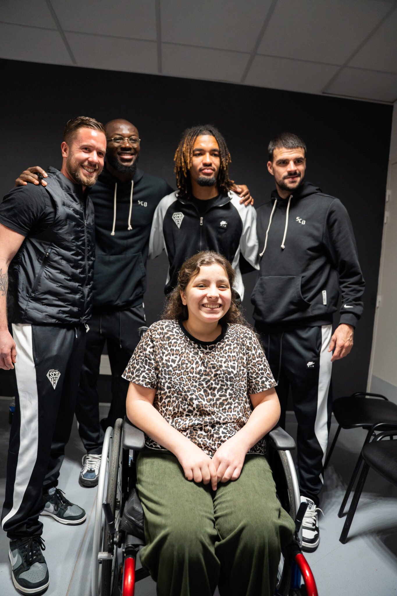 Le 18 mars 2026, Angers SCO a offert aux enfants du Centre des Capucins un après-midi exceptionnel aux côtés de joueurs professionnels et d’un membre du staff. Hervé Koffi, Dan Sinaté et Louis Mouton, accompagnés de Tom Frère, préparateur physique, se sont rendus sur place pour partager rires et complicité avec les jeunes patients.