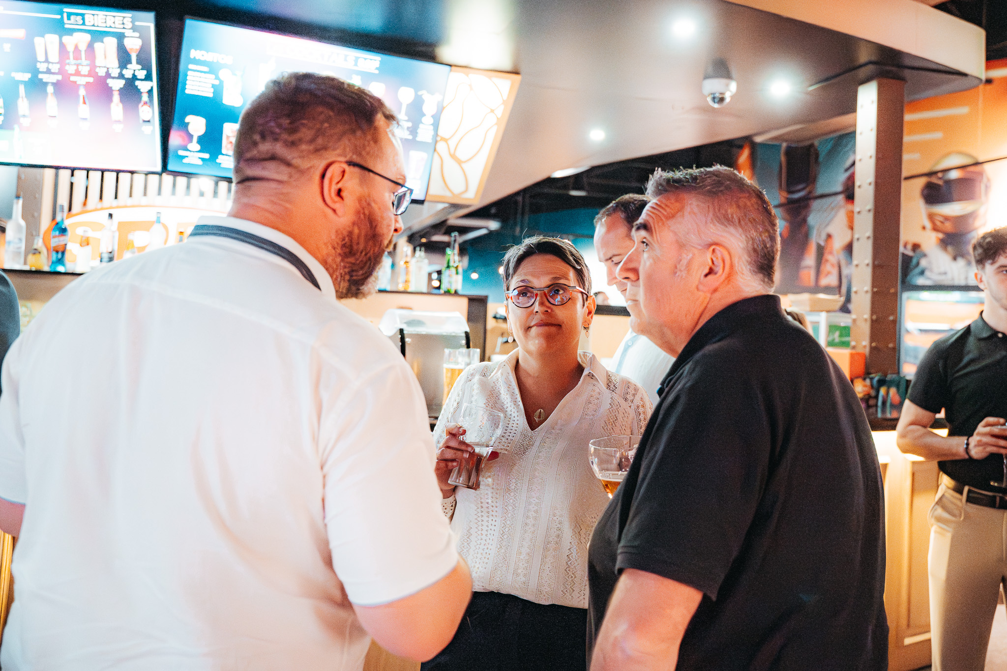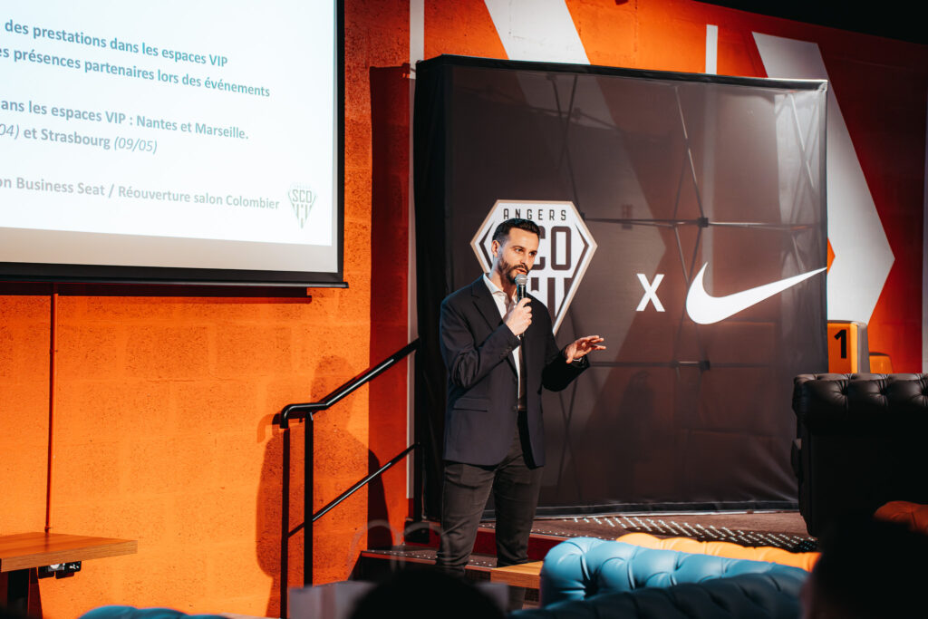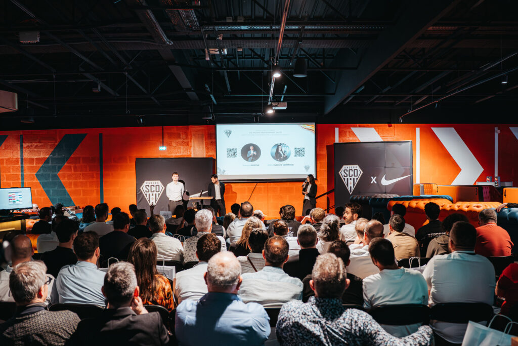 Jérome Negroni, Président du Directoire d’Angers SCO, a ouvert cette soirée par un discours avant de céder le micro à nos commerciaux. S’en est suivi un buffet autour duquel partenaires, staff et joueurs ont pu échanger avant de rapidement basculer sur un moment convivial et de profiter des nombreuses animations du lieu.